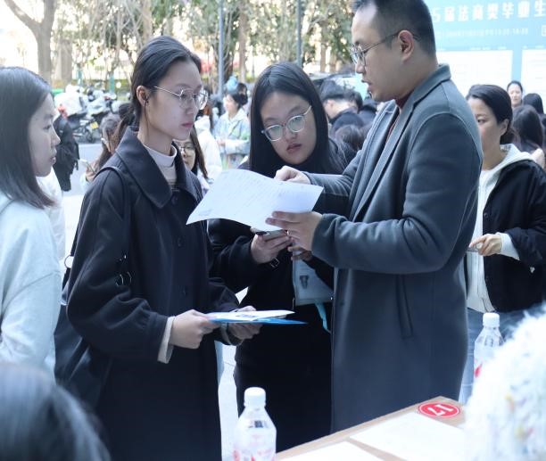 11月27日下午,新葡的京集团3522(法学院)在南山校区综合楼C楼大厅举行了一场充满创意与活力的招聘会。这不仅仅是一场普通的招聘会,它将求职与游园巧妙结合,开创了一种全新的求职体验,让学生们在轻松愉快的氛围中寻找自己的职业方向,更增加了学生们在求职过程中与企业之间的互动,让求职活动变得更加多元高效。