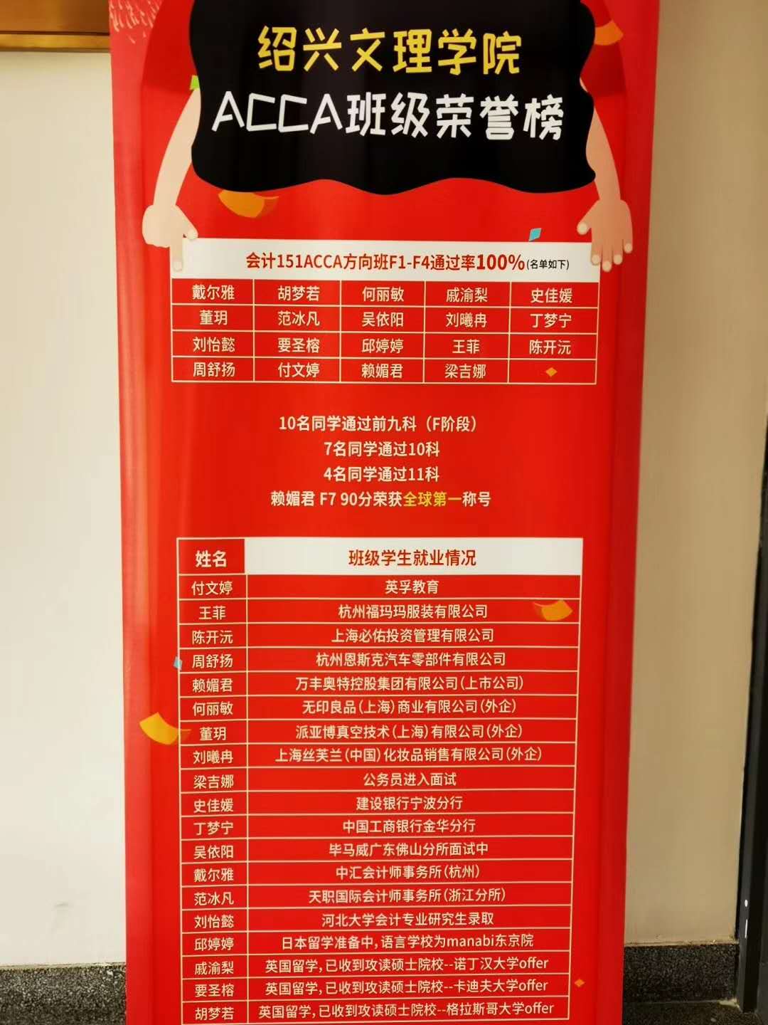 同学们实现了100%的就业,其中5名同学继续攻读硕士研究生,刘怡懿同学考上河北大学的会计硕士、胡梦若/戚渝梨/要圣榕和邱婷婷同学分别赴英国格拉斯哥大学/诺丁汉大学/卡迪夫大学以及日本就读硕士;吴依阳入职国际四大会计师事务所之一的毕马威,戴尔雅等2位同学入职杭州天职国际等大型会计师事务所;赖媚君等5位同学入职上市公司和外企,史佳媛等3位同学入职银行保险业。同学们或继续学习深造,或进入了理想中的职场。至此,2015级ACCA方向班交出了靓丽的答卷。