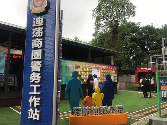 结束了第一站的旅程,同学们来到了第二站——迪荡商圈警务工作站。相较于面向于古城区的书圣故里警务站,该站主要是为了保卫周围各大商圈的稳定、高级住宅小区附件的安全。内有暴恐虚拟灭火设备,教授大家灭火知识;网络电信诈骗百科,带领大家远离信息诈骗;社区便民服务室,调和社会民众之间的矛盾。该站还创造性地建设了“迪荡警管家”志愿队,下设物业、商务、旅馆业、特业等四支分队,推进平安公益事业发展。