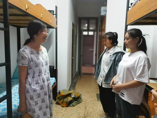 “家住哪里?住宿条件还满意吗”走进法学新生寝室,喻文莉副院长询问了新生们的生源地、对学校环境的满意度状况以及对宿舍生活是否习惯等,寄语新生要脚踏实地,珍惜大学四年时光,有规划地度过大学生活。