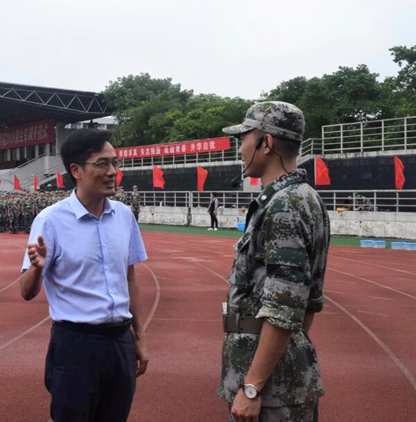 在军训现场,史正东书记详细了解新生军训工作进展情况,与承训部队教官和新生亲切交流,对教官们的辛勤劳动表示感谢,对新生们刻苦训练的精神风貌给予了充分肯定。他要求军训工作既要坚持标准、严格要求,又要根据天气情况科学合理安排训练任务;要把军训工作与爱国主义教育、纪律养成教育、生活习惯培养等有机结合,精心组织,确保安全。同时,他还十分关心新生们的身体健康情况,嘱咐辅导员多多注意学生身体状况,叮嘱学生要按时休息,科学作息。