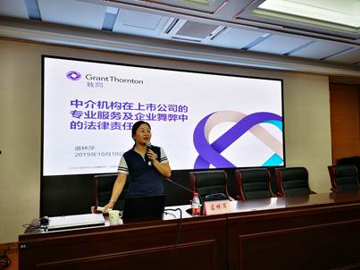 10月10日上午,会计系邀请致同会计师事务所(特殊普通合伙)广州分所合伙人、中国注册会计师盛林萍为会计学本科生和研究生作题目为“中介机构在上市公司的专业服务及企业无比中的法律责任”的主题报告。盛林萍系统介绍了中介机构参与IPO的方式、中介机构在上市公司欺诈发行案中的法律责任以及会计师核查IPO企业的具体方法和内容,报告中用案例和数据说明会计师审计的内容和过程,并且以自身学业和工作经验指导学生的学业和职业生涯规划。