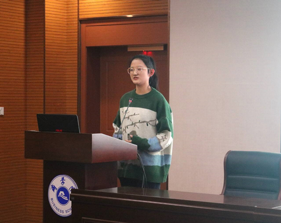 在行管161班陈芳方、国商171班王晓英和法学172班余诗彤的演讲中都告诉我们,赛前准备十分重要。俗话说:“不打无准备之战”。赛前的信息搜集、案例分析等都为我们竞赛提供思路、突破点和创新点。通过分析研究优秀竞赛案例,从中发现优秀的经验做法、竞赛要点以及“避坑”提示等。国商161班的王梦婷则从具体的前期准备为到场同学进行阐释:首先要确定大方向——课题,在此前提下确定小方向,比如寻找相关公司进行调研,最后从中获取对课题有价值的内容。