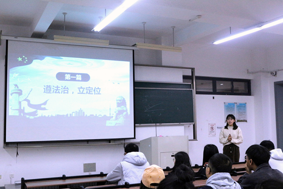 首先,她从确立法治规则的内容说明了遵法治对于树立定位的重要意义。“立善法于天下,则天下治。立善法于一国,则一国治。”由此可以看出,法治对于一个国家的重要性。法治体系是国家治理体系的骨干工程,而“中国棋”中的法治正是中国的底线与规则。在第二篇守正道创新篇中,宣讲人提到,辩证思维是习近平新时代中国特色社会主义思想秉持的理论品格。知常明变者赢,守正创新者胜,唯有坚持守正,创新才有方向和依归;不断创新,守正才有活力和基础。