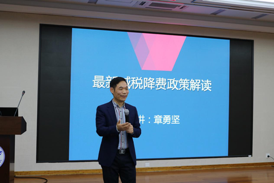 12月4日下午,MPAcc大讲堂邀请新葡京官网校外兼职硕士生导师、绍兴通大会计师事务所所长章勇坚先生举办题为《最新减税降费政策解读》的专题讲座。章勇坚先生从自身经历出发,用生动风趣的语言解读了近期的税收政策,从降税率不同于降税负、怎么面对客户的纠缠等方面进行讲解,让在场师生对税收政策有了更深入的了解。同时讲座还涉及如何在实务中合理运用这些政策,理论与实际相结合的各种案例让大家受益匪浅。
