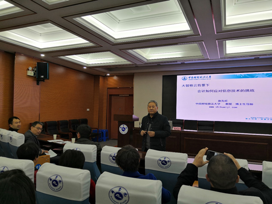 “大智移云”背景下社会生产方式和商业经营模式发生了翻天覆地的变化,倒逼会计创新变革,衍生出会计服务主体多元化和会计信息来源多渠道化趋势,从而为财务会计和管理会计的发展注入创新势能。为探索新时代、新商科背景下会计类专业人才培养模式改革,拓展会计系老师和学生的知识视野,研讨“大智移云”时代会计学科发展走向。2019年12月12日下午在6-A405报告厅,新葡的京集团3522邀请了中南财经政法大学博士生导师施先旺教授,进行“大智移云背景下会计如何应对信息技术的挑战”学术讲座,本次讲座由新葡京官网会计系主任胡素华博士主持,新葡的京集团3522院长周鸿勇教授、副院长丁志刚博士、会计系全体教师及其他专业教师、MPAcc及会计专业硕士生和部分会计专业本科生聆听了讲座。