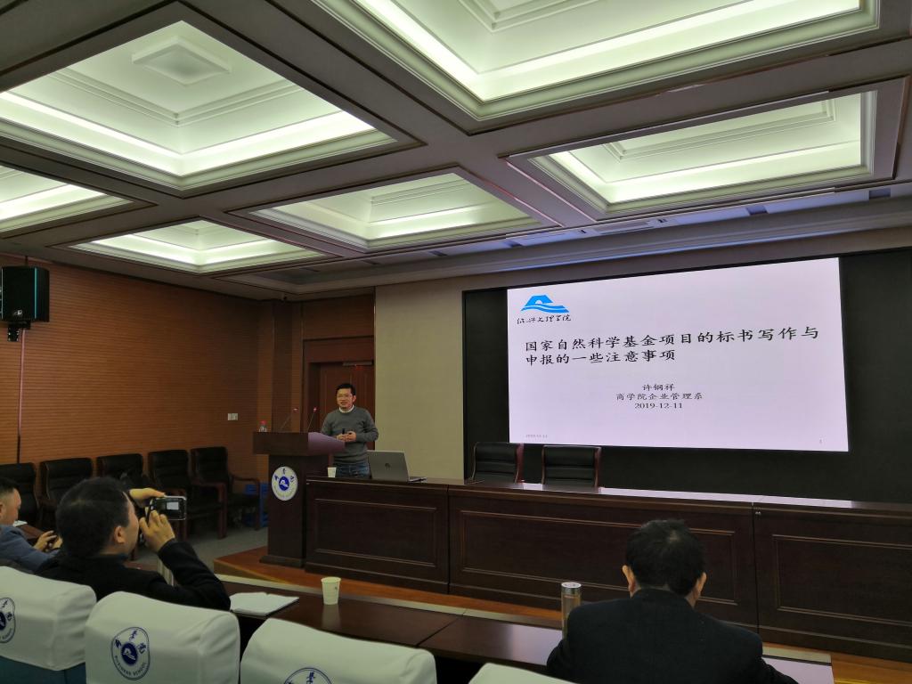 12月11日下午,新葡京官网许钢祥、葛天博两位博士在A405做了关于国家社科基金申报的讲座,会议由邵青老师主持。许钢祥博士和葛天博博士分别从《国家自然科学基金项目的标书写作与申报的一些注意事项》和《国家社科基金项目申报心得体会》阐述申报的程序、过程,以及在申报中应该注意的事项、申报的体会。新葡京官网教职工认真地聆听了讲座。