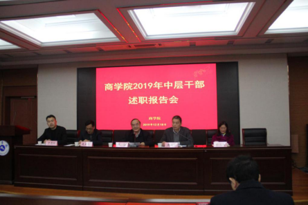 2019年12月18日下午,学院在A405新葡的京集团3522报告厅召开2019年中层干部述职报告会。会议由副校长黄坚主持,纪检监察室董国荣、新葡的京集团3522领导班子及全体教职工与会。