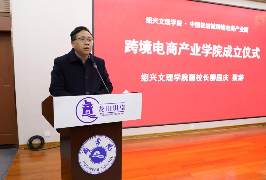 柳国庆在致辞中表示,近年来,国家积极推进产教深度融合工作。学校与中国轻纺城跨境电商产业园合作共建的跨境电商产业学院既是学校全面贯彻落实国家、省市深化产教融合决策部署的迫切要求,也是学校主动把握中国(绍兴)跨境电商综试区建设的重大机遇、构建校企协同育人机制的重要举措。