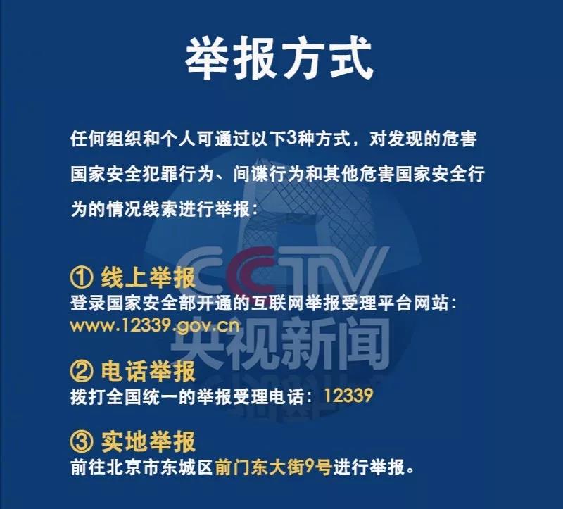 举报方法:拨打12339反间谍举报电话,或登录互联网举报受理平台,或直接写信到国家安全机关。