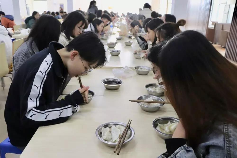 在各部门找完食材后,都回到了教工食堂准备进行下一轮的挑战。本次破冰设计了各种不同的游戏,一项项小游戏在各个不同部门的比拼下展开。在热身游戏后,各部门学生会成员们围坐在一起大显身手,别出心裁地包着饺子,并设计成各种形状。在包饺子的同时,大家围绕着学习、生活、工作等话题不时交谈着,成员之间的感情也随之加深。