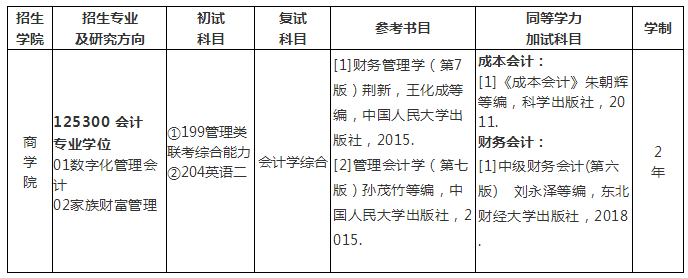 四、会计硕士(MPAcc)专业招生目录